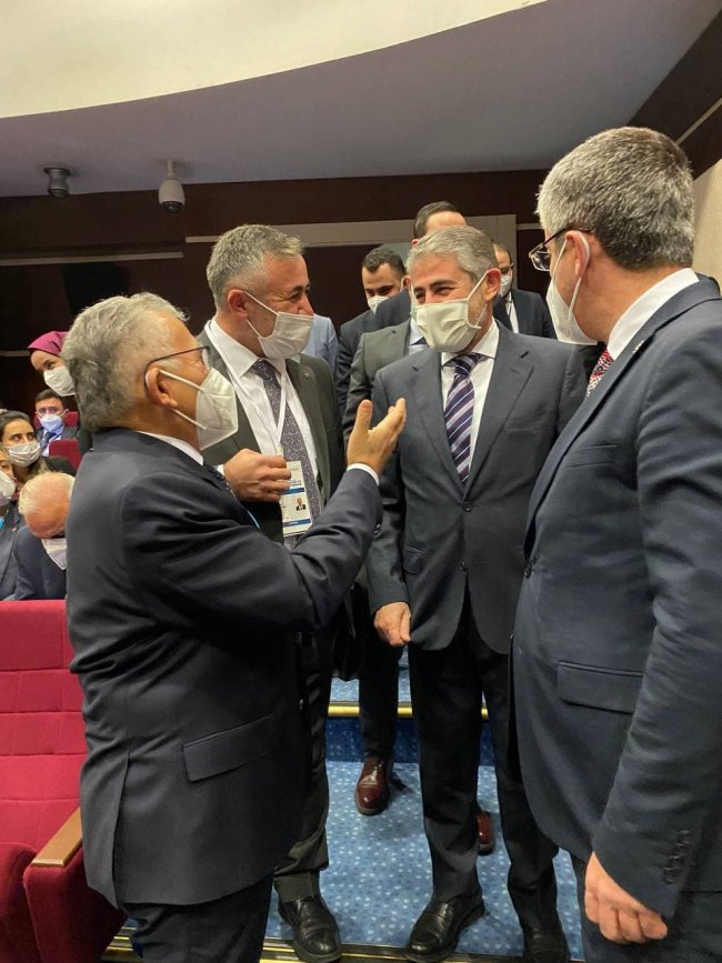 Öte yandan, başkan büyükkılıç toplantının yapıldığı salonda Milli Savunma Bakanı Hulusi Akar, Ulaştırma ve Altyapı Bakanı Adil Karaismailoğlu, Sanayi ve Teknoloji Bakanı Mustafa Varank ve Hazine ve Maliye Bakanı Dr. Nurettin Nebati ile bir süre sohbet etti.