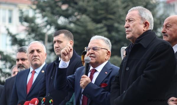 Kayseri Büyükşehir Belediye Başkanı Memduh Büyükkılıç, AK Parti İl Başkanlığı ve MHP İl Başkanlığı’na nezaket ziyaretleri sonrası beraberindeki protokolle büyükşehir belediye binası önünde açıklamalarda bulundu.