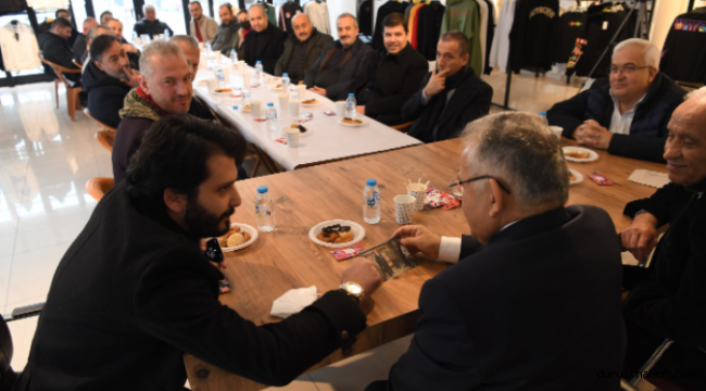 Kayseri Büyükşehir Belediye Başkanı Dr. Memduh Büyükkılıç, Tekstilkent’te faaliyet gösteren esnafları ziyaret etti. Burada esnaflar tarafından gösterilen bir fotoğraf karesi, Başkan Büyükkılıç’ı duygulandırarak 22 yıl öncesine götürdü.Üreten ve Kayseri’ye artı değer katan sanayicilerin, iş insanlarının ve esnafların her zaman yanında yer alan Başkan Büyükkılıç, bu kapsamda Tekstilkent’i ziyaret etti. Burada Devecioğlu Giyim iş yeri sahibi Murat Devecioğlu'nun ev sahipliğinde Tekstilkent’in esnaflarıyla bir araya gelip, taleplerini dinleyen Başkan Büyükkılıç, esnaflara işlerinde helalinden bol kazanç diledi. Esnaflar da Büyükkılıç’a ilgi ve alakasından dolayı teşekkür etti.Ziyaret esnasında esnaflar tarafından, Büyükkılıç’a 22 sene önce esnaf ziyaretinde Diyanet İşleri eski Başkan Yardımcısı Necmettin Nursaçan, AK Parti Genel Başkan Yardımcısı Mehmet Özhaseki ile birlikte Başkan Büyükkılıç’ın yer aldığı fotoğrafı gösterildi.Fotoğrafları gören ve duygulanan, zamanın çok hızlı geçtiğini söyleyen Başkan Büyükkılıç, fotoğrafa ‘müthiş’ yorumu yaparak, “Fedakârlık olmadan olmaz. Birliğimiz, beraberliğimiz, dayanışmamız, ülkemize sahip çıkma duygumuz bizim ilacımız, hepsini çözeriz” dedi.Başkan Büyükkılıç, ziyareti sonunda esnaflarla hatıra fotoğrafı çektirdi.