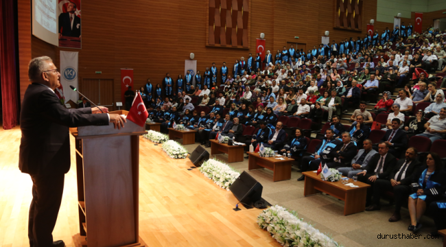Kayseri Büyükşehir Belediye Başkanı Dr. Memduh Büyükkılıç, Kayseri Üniversitesi (KAYÜ) Uygulamalı Bilimler Fakültesi 2021-2022 Eğitim Öğretim Yılı Mezuniyet Töreni’ne katıldı. Başkan Büyükkılıç, törende yaptığı konuşmada, “Siz sevgili gençlerimizi seviyor ve sizlere güveniyoruz” diyerek fakültenin ilk mezunu öğrencilerin ve ailelerinin mutluluğunu ve heyecanını paylaştı.Kentin her köşesinde yerel yönetim hizmetlerini aksatmadan yürüten ve bu hizmetlerin yanı sıra gençlere yönelik hizmetlere ve gençlerle bir araya gelerek, gönüllerine dokunmaya ayrı bir önem veren Büyükşehir Belediye Başkanı Dr. Memduh Büyükkılıç, öğrencilerin en özel günlerinde de mutluluklarını paylaşıyor.Büyükkılıç, bu kapsamda ilk mezunlarını veren Kayseri Üniversitesi, Uygulamalı Bilimler Fakültesi’nin 2021-2022 Eğitim Öğretim Yılı Mezuniyet Töreni katılarak öğrencilerin ve ailelerinin heyecanına ortak oldu.Kayseri Üniversitesi 15 Temmuz Yerleşkesi Kongre ve Kültür Merkezi’nde gerçekleşen mezuniyet törenine Kayseri Büyükşehir Belediye Başkanı Dr. Memduh Büyükkılıç’ın yanı sıra Kayseri Üniversitesi Rektör Yardımcısı ve Uygulamalı Bilimler Fakültesi Dekanı Prof. Dr. Derviş Boztosun, Milliyetçi Hareket Partisi İl Başkanı Adnan İncetoprak, Kayseri Ticaret Odası Başkanı Ömer Gülsoy, akademisyenler, öğrenciler ve aileleri katıldı.Saygı duruşunun ardından ve İstiklal Marşı’nın okuması ile başlayan törende konuşan Başkan Büyükkılıç, gençlerin bu ülkenin geleceği olduğunu vurgulayarak, “Yavrularımızın bu mutlu anını paylaşmaktan onur duyuyor, her birini tebrik ediyor, alınlarından öpüyorum. Onlar bizim geleceğimiz” dedi.Kayseri’nin veliler ve âlimler şehri, endüstri ve ticaret şehri olarak bilindiğini hatırlatan Büyükkılıç, kentin tarihi, doğal ve kültürel zenginlikleri ile ilgili bilgiler aktardı.Başkan Büyükkılıç ‘Selçuklu’yuz, Osmanlı’yız, Cumhuriyet’iz’ diyerek sözlerini şöyle sürdürdü:“İnşallah Cumhuriyetimizin 2023’üncü yılını, 100’üncü yıl dönümünü Cumhuriyetimize yakışır eserlerle taçlandırarak siz gençlerimizle birlikte kutlarken aynı zamanda Fatih’iz, Alparslan’ız dolayısıyla 2053’leri ve inşallah 2071’leri yine o ruh içerisinde heyecanla kutlayacak olan gençlerimiz, siz bizim geleceğimizsiniz. Aidiyet duygusu dediğimiz ailenizi sahiplenme, şehrimizi sahiplenme, ülkemizi sahiplenme, yerli ve milli anlayış içerisinde değerlerimizi sahiplenme olmazsa olmazımız olan ay yıldızlı Türk bayrağımızı, vatanımızı, milletimizi, dinimizi sahiplenme duygusu içerisinde tabi ki siz sevgili gençlerimizi seviyor ve sizlere güveniyoruz. Biz de sizlere layık olma yolunda gece demeden, gündüz demeden birlik, beraberlik anlayışı içerisinde hizmet ediyoruz.”Kayseri Üniversitesi Uygulamalı Bilimler Fakültesi Dekan Vekili Prof. Dr. Derviş Boztosun da Uygulamalı Bilimler Fakültesi hakkında bilgiler vererek, gençlerin kendilerini gururlandırdığını, 4 yılın sonunda mezun olduklarını ve hepsini canı gönülden tebrik ettiğini sözlerine ekledi.Uygulamalı Bilimler Fakültesi’nden birincilik derecesi ile mezun olan Burhan Yavuz’un konuşmasının ardından mezunlara diplomaları takdim edildi. Başkan Büyükkılıç, birincilikle mezun olan Yavuz’a diploma ve birincilik plaketini takdim etti.Törende katılımcılara Büyükşehir Belediyesi tarafından hazırlanan ‘Zenginlikler Şehri Kayseri’ filmi de izletildi.