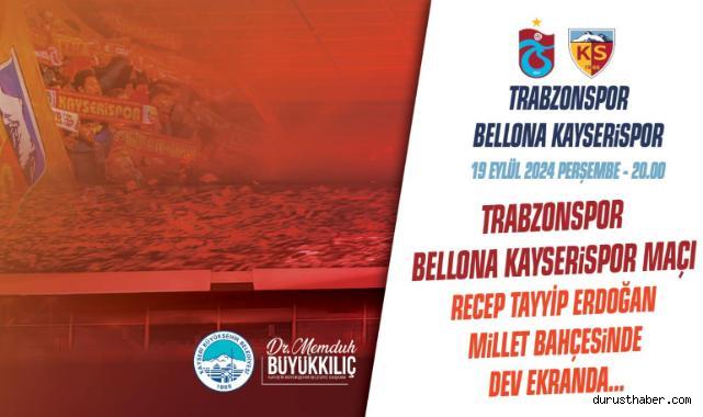 Büyükşehir Belediye Başkanı Dr. Memduh Büyükkılıç, Kayserilileri bu akşam oynanacak olan Trabzonspor-Bellona Kayserispor karşılaşmasını Recep Tayyip Erdoğan Millet Bahçesi’nde dev ekranda yayınlayacaklarını belirterek, “Bu akşam Kayserispor’umuz için Recep Tayyip Erdoğan Millet Bahçesi’nde buluşuyoruz” dedi.