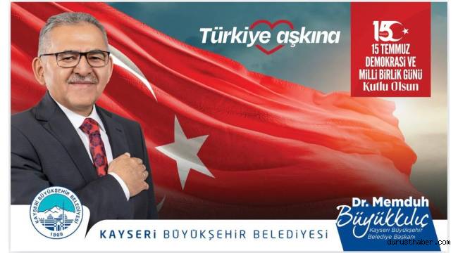 Kayseri Büyükşehir Belediye Başkanı Memduh Büyükkılıç, 15 Temmuz Demokrasi ve Milli Birlik Günü dolayısıyla mesaj yayımladı.