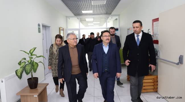 Kayseri Büyükşehir Belediye Başkanı Dr. Memduh Büyükkılıç, Vali Gökmen Çiçek ile birlikte Kayseri Mesleki Eğitim ve Kültür A.Ş. (KAYMEK) Akademi Tesisi, Çamaşır Yıkama Merkezi ile Hasta ve Hasta Yakınları Misafirhanesi’ni ziyaret ederek tesisteki vatandaşlar ve personel ile bir araya geldi.Kayseri’deki sosyal projeler ile adından söz ettirerek ödüller alan ve vatandaşların duasını da alarak memnuniyetini kazanan Kayseri Büyükşehir Belediyesi’nin önemli kuruluşu KAYMEK, bir yandan hizmetlerini sürdürürken, diğer taraftan da ziyaretçilerini ağırlıyor. Bu kapsamda Başkan Büyükkılıç ile Vali Çiçek, KAYMEK Akademi Tesisleri’ne gerçekleştirdikleri ziyaretlerinde yapılan çalışmalar hakkında bilgiler alırken, faaliyetleri de yerinde incelediler.
