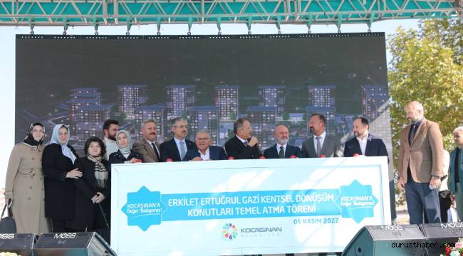 Konuşmaların ardından kürsüye çıkan protokol tarafından dualar eşliğinde butona basılarak Erkilet Ertuğrulgazi Mahallesi Kentsel Dönüşüm Konutları’nın temeli atıldı.