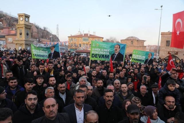 ‘İlmek Başkan’ sloganlarıyla karşılanan Belediye Başkanı Mustafa İlmek ilçe meydanında yaptığı konuşmada “ Biz, bu halka güzel hizmetler sunmuşuz ki, sizler meydanları doldurmuşsunuz. Gelin hep birlikte bu ilçeye hizmet edelim. Biz bu millete hasbi ve harbi olduk. Herkesin kardeşiyiz ve herkesle yol yürüme kararımız var. Bizler yeni şeyle söylüyoruz. Bakanlıklarımız, Başkanlıklarımız ve Cumhurbaşkanımız desteğiyle her şeyi biz yaparız. 5 yıl bir süre geçirdik. Allah’tan gelenin kahrı da hoş. Lütfu da hoş. 2 yıl pandemi yaşadık. Sonrasında Asrın felaketi deprem yaşadık. Ancak yılmadık, gecemizi gündüzümüze kattık. Bunlar yapamaz diye el ovuşturanlar şimdi meydana çıkmışlar. Bizler görevimiz boyunca kimseyi ötekileştirmedik. Belediyemize gelenin sorununu dinledik. Elimizden geldiğince problemleri çözmeye çalıştık. Sorununu çözemediğimizden özür diledik, çay ikram ettik. Kavga, İftira, Yalan ile işimiz olmadı, olanlarla da işimiz olmayacak. Biz bugüne kadar konuşmadıysak teşkilat ahlakımızdan konuşmadık. Birileri meydanı boş buldu. Meydanına hükmü bizdedir. Kapı kapı çalışacağız. Giremeyeceğimiz bir ev yok. Çünkü biz çalıştık, ekmek verdik. Kimsenin ekmeği ile oynamadık. Bu halkın insanlarına ekmek vermek suç mu? Ekmeğin kıymetini ekmeğe sarılan bilir. Çalışan mesai arkadaşlarıma hayat standartlarına uygun maaş vermek suç mu? Siz benim yanımda yürüyün, bakın bu İncesu daha nasıl gelişecek” diye konuştu.