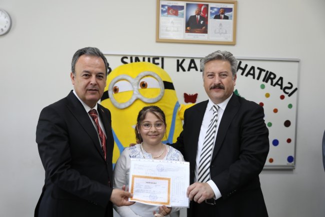 eğimizin teminatı çocuklarımızın yüzlerini güldürmek bizleri ziyadesiyle mutlu etti. Her zaman hedefimiz iyi insan yetiştirmek olmalıdır. Çocuklarımız bizim umudumuz olan geleciğin mimarları. Aldıkları başarılı bir eğitimle hem kendilerine ve ailelerine hem de ülkeye fayda sağlayacak neferler olacaklar. Öğrencilerimize önümüzdeki yaz tatilini dinlenerek ve bol bol kitap okuyarak geçirmelerini diliyorum. Tüm öğrencilerimizi başarılarından dolayı kutluyor, iyi tatiller diliyorum” dedi.