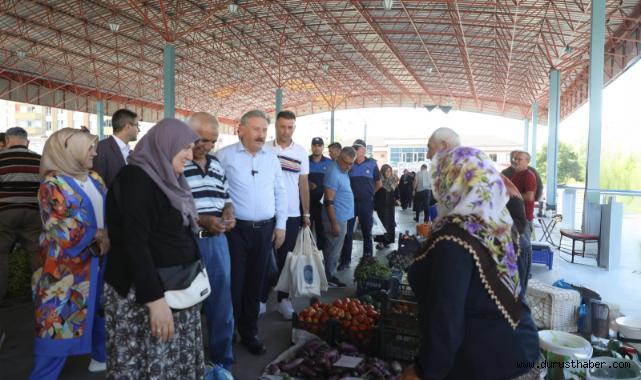 Melikgazi Belediye Başkanı Mustafa Palancıoğlu, İldem Pazar Yeri’nde kurulan köy pazarını ziyaret ederek üreticilerle ve vatandaşla bir araya geldi. Meyve ve sebzesini tarlasından vatandaşın sofrasıyla buluşturan köy pazarının, İldem, Keykubat ve Tacettinveli Mahallesi olmak üzere Melikgazi’de üç yerde kurulduğunu belirten Başkan Palancıoğlu, “Melikgazi’mizde İldem, Keykubat ve Tacettinveli Mahallesi olmak üzere üç yerde köy pazarı açıyoruz. İldem Köy Pazarımız Salı, Çarşamba, Perşembe günleri; Keykubat Köy Pazarımız Pazartesi, Çarşamba, Cumartesi günleri; Tacettinveli Köy Pazarımız ise Perşembe, Cuma, Cumartesi günleri kuruluyor. kayseri civarındaki tüm çiftçilerimiz üretmiş oldukları domates, patates, soğan, elma, armut ve diğer meyve sebzeleri burada pazarlıyorlar. Ucuz, kaliteli, organik ürünler için kendilerine teşekkür ediyoruz. Tüm vatandaşlarımızı hem köy pazarlarımıza hem de meyve-sebze pazarlarımıza bekliyoruz” diye konuştu.