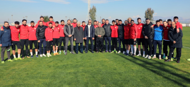 “ŞAMPİYONLUĞA İNANIYORUZ”Burada konuşan Başkan Yalçın, 9 galibiyet, 4 beraberlik ve namağlup şekilde 31 puanla zirveye ortak olan takımın başarısından duyduğu memnuniyeti belirterek, “İyi bir kamp haberlerini alınca sevindik. Sizlerin mutluluğu bizim mutluluğumuzdur. Sizler elinizden geleni fazlasıyla yapıyorsunuz. Hocalarımıza, yönetim kurulumuza sonsuz teşekkür ediyorum. Sizler de bizler de iyi bir iş yapmaya çalışıyoruz. Hedefimizi şampiyonluk olarak belirlemiştik. Bundan şüphemiz yok. Buna yürekten inanıyoruz.” dedi.Başkan Yalçın, takımın istek ve arzusunu bir kez daha gördüklerini ifade ederek, “Bilindiği gibi 9 galibiyet, 4 beraberlik ve namağlup şekilde BAL’daki takımlar arasında ilk 10’un içerisindeyiz. Bu durum başarı ve isteği gösteriyor. Ben hocalarımıza, yönetim kurulu üyelerimize teşekkür ediyorum. Bütün takımlara, Türk sporuna hizmet eden bütün gençlere başarılar diliyorum. Kazasız ve sakatlıksız bir sezon diliyorum.” diye konuştu.Teknik direktör Halil Aslan ise, ziyaretten duyduğu memnuniyeti kaydederek, “Ayağınıza sağlık başkanım. Bizleri onure ettiniz.” ifadelerini kullandı.“ŞAMPİYONLUĞU SİZE ARMAĞAN ETMEK İSTİYORUZ”Oyuncular adına konuşan takım kaptanı Canberk Soykuvvet de, “Buraya bizleri ziyarete geldiğiniz için teşekkür ederiz. Her zaman hem maddi hem de manevi desteğinizi hissediyoruz. Allah sizden razı olsun. Biz de inşallah sezon sonunda hedeflediğimiz şampiyonluğa ulaşıp size armağan ederiz.” şeklinde görüşlerini belirtti.Devre arası kampını Antalya’da geçiren Talasgücü Belediyespor, 10 günlük programın ardından 18 Ocak Çarşamba günü Kayseri’ye gelecek.Sarı lacivertli takım 29 Ocak’ta başlayacak ikinci yarının ilk maçında deplasmanda Develigücü ile karşı karşıya gelecek.