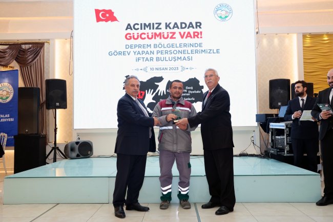 İftar programa talas Belediye Başkanı Mustafa Yalçın, meclis üyeleri ve eşleri, başkan yardımcıları, birim müdürleri ve personel katıldı. Programda konuşan Başkan Yalçın, sözlerine “Kendi acısını hissedene canlı, başkasının acısını hissedene insan denir” diyerek başlarken, “Depremler milletimizi yeniden bir araya getirdi. Yabancı bir gazeteci ‘Türkler çıldırmış gibiydi. Sanki TIR’ların freni boşalmıştı’ diyor. Bizi ifade eden bu sözün bir de kurumsal tarafı var. Sizlere güvenerek göz dolduran çalışmalara imza attık” şeklinde konuştu.
