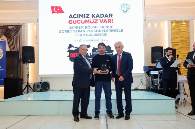 Başkan Yalçın, personelin çalışmalarından övgüyle bahsederken, bu çalışmalara oy birliği ile tam destek veren Talas Belediye Meclisi üyelerine de teşekkür etti. Konuşmaların ardından Başkan Yalçın ve meclis üyelerince deprem bölgesinde her alanda görev yapan 212 personele teşekkür plaketi verildi.