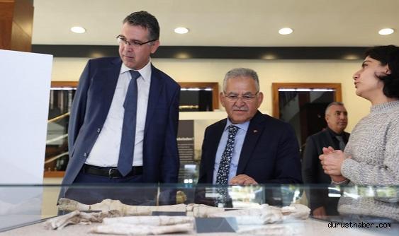 Kayseri Büyükşehir Belediye Başkanı Dr. Memduh Büyükkılıç, Kayseri Bölge Adliye Mahkemesi Başsavcısı Burhan Bölükbaşı’yı makamında ağırlayarak, Büyükşehir Belediyesi Fuaye Alanı’nda sergilenen 7,5 milyon yıllık fosiller hakkında Bölükbaşı’ya bilgiler verdi.