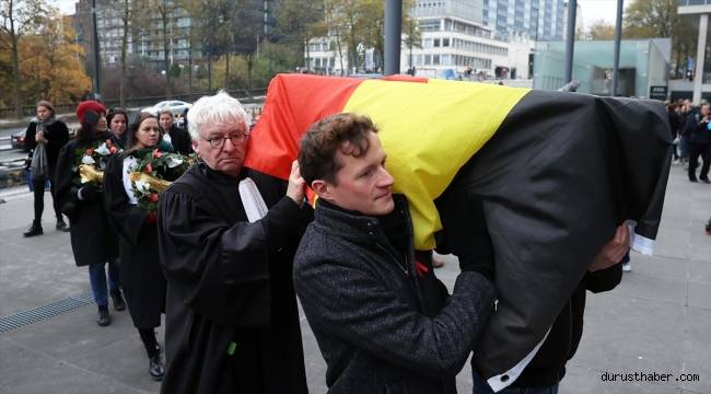 Avukatlar, temsilen "hukuk devletini" koydukları Belçika bayrağı örtülü bir tabutu cenaze marşı eşliğine taşıyarak bina önüne bıraktı.Tabutun başına "Hukuk devleti huzur içinde uyu 1830-2022" yazılı bir mezar taşı diken avukatlar, sıra halinde temsili mezar başına çelenk bıraktı.AA muhabirine konuşan avukat Estelle Didi, "Bugün buradayız çünkü devlet, Belçika'da mahkemelerin verdiği kararlara saygı duymuyor. Bu, demokrasimiz için çok tehlikeli." dedi.Didi, şimdiye dek yaklaşık 7 bin davanın kazanıldığını ancak sonuç alınamadığını ifade ederek Adalet Bakanı Vincent Van Quickenborne ile görüşme talep ettiklerini ancak yanıt alamadıklarını söyledi.Sığınmacıların tıbbi hizmetlerden yoksun biçimde sokakta kaldığını vurgulayan Didi, "Brüksel sokaklarında çok fazla virüs kol geziyor. Kış şartları giderek ağırlaşıyor." diye konuştu.Didi, devletin tutumunun nedeninin "siyasi isteksizlik" olduğu değerlendirmesinde bulundu."Demokrasiyle ilgili ciddi endişe duyuyorum"