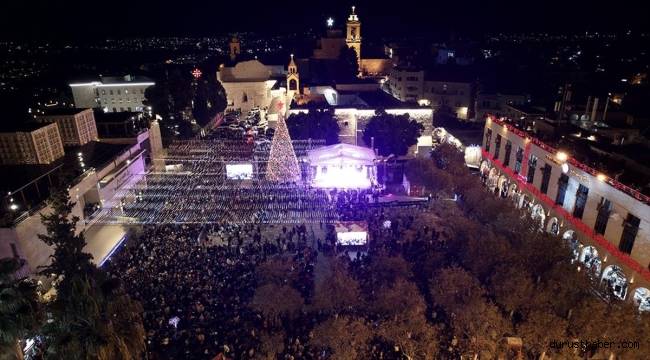 Mehd Kilisesi (Nativity-Doğuş) önündeki Noel ağacının aydınlatılması için düzenlenen törene Filistinli yetkililerin yanı sıra çok sayıda din adamı, siyasetçi ve binlerce Hristiyan hacı katıldı.