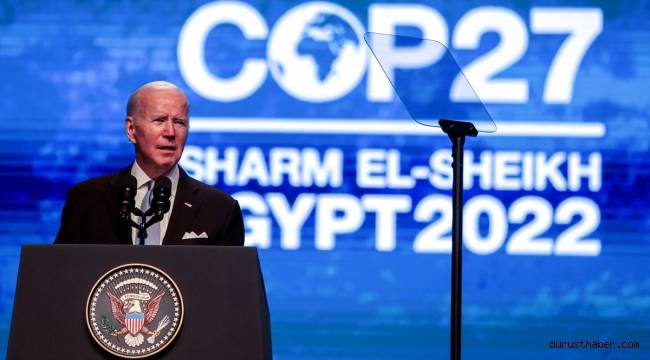 Biden, Mısır'ın Şarm El Şeyh kentinde düzenlenen 27. BM İklim Konferansı'nda yaptığı konuşmada, iklim krizinin insani, ekonomik, çevre ve ulusal güvenlik ile ilgili olduğuna işaret etti, selefi Trump'ın Paris İklim Anlaşması'ndan çekildiğini anımsattı.