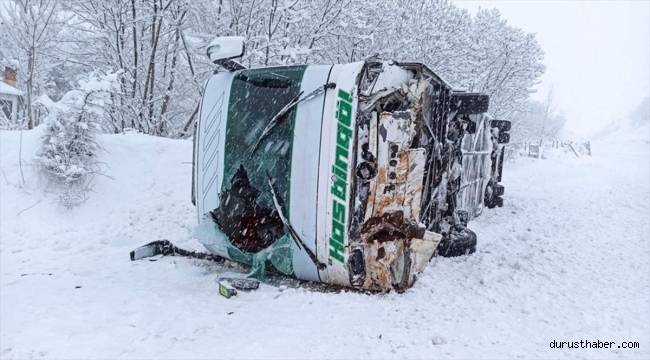 Sürücüsünün kimliği henüz öğrenilemeyen 20 PK 010 plakalı yolcu otobüsü Bingöl-Karlıova kara yolunun Çobantaşı köyü mevkisinde yoğun kar ve tipi nedeniyle kontrolden çıkarak devrildi.