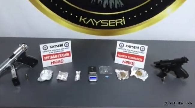 Şüphelilerin ikamet ve araçlarında yapılan aramalarda ise toplam 67,17 gram metamfetamin, 13,39 gram bonzai, 3 tabanca ve 3 fişek ele geçirildi.