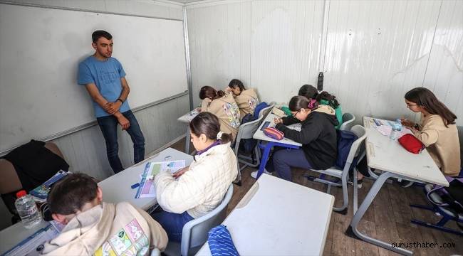Fen bilimleri öğretmeni Erhan Gümüş ile 12 öğretmen arkadaşı, ilçeye bağlı Kurtderesi Mahallesi'ndeki Adem Nural İlkokulu karşısında hayırseverler tarafından temin edilen konteynerde 24 Şubat'ta 22 öğrenciye eğitim vermeye başladı.