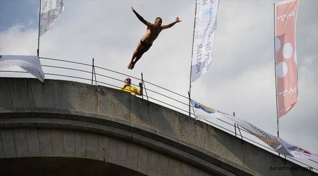 Osmanlı mirası tarihi Mostar Köprüsü'nde düzenlenen atlama yarışlarına Batı Balkan ülkelerinden katılan 33 sporcu, kendini Neretva Nehri'nin serin sularına bıraktı.