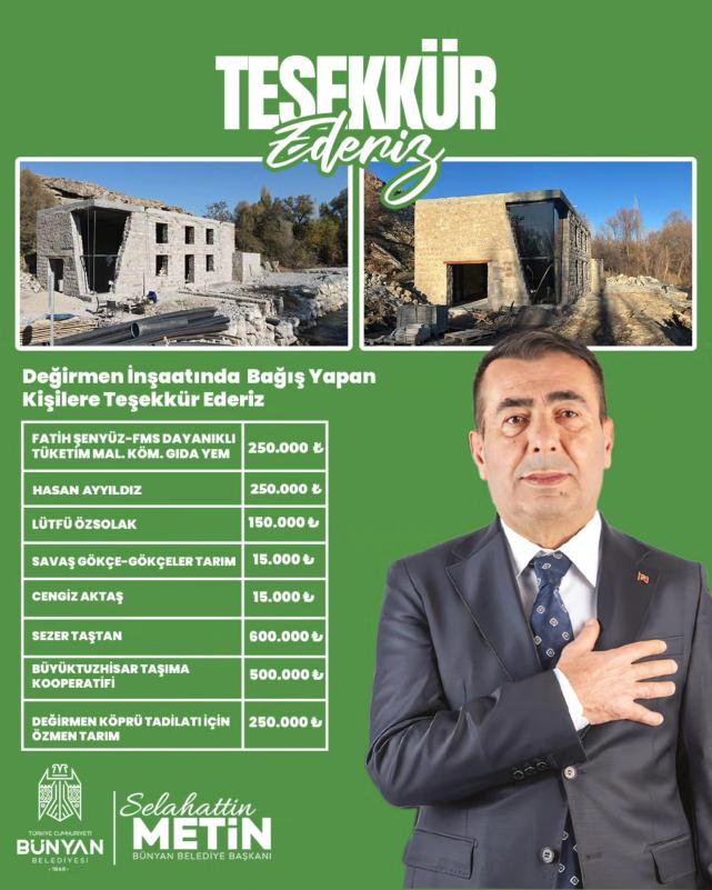 3. Bünyan Belediye Başkanı Selahattin Metin Neden Teşekkür Etti?