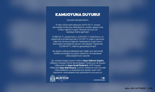 Bünyan Belediyesi borçlarının tamamını ödedi!