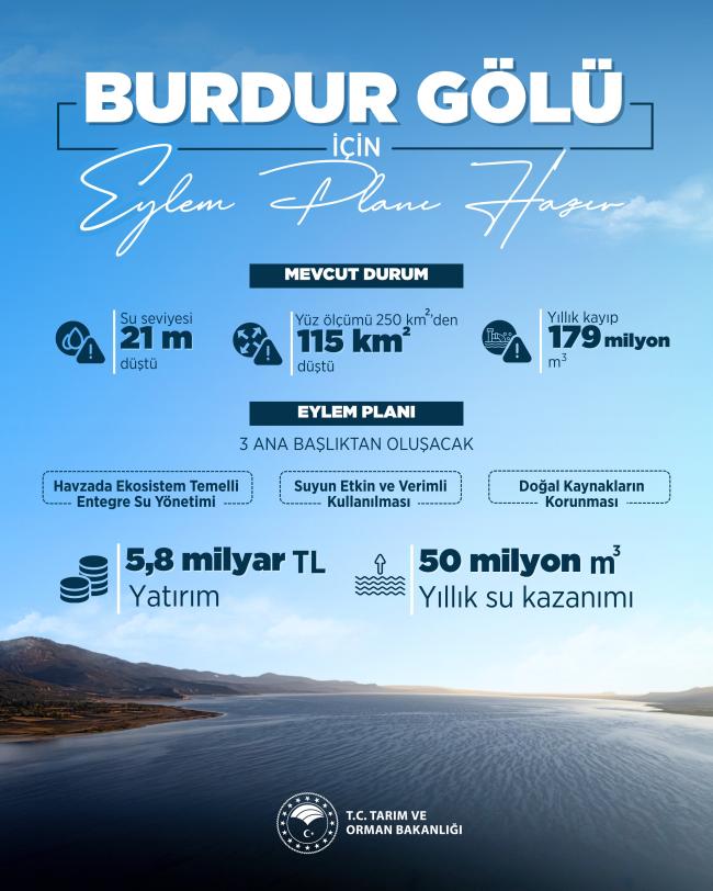 Yapılan açıklamada, suyun etkin kullanımı, doğal kaynakların korunması ve havza bütünlüğünün sağlanmasının eylem planının temel unsurları arasında yer aldığı belirtildi. Bu kapsamda Burdur Gölü’nün su kaybının önlenmesi, çevresel sürdürülebilirliğin artırılması ve bölgedeki ekosistemin güçlendirilmesi hedefleniyor.Tarım ve Orman Bakanlığı, Burdur Gölü’nün korunmasına yönelik çalışmaların kararlılıkla sürdürüleceğini ifade ederken, bilimsel veriler ışığında hazırlanan planın uzun vadeli bir yol haritası sunduğunu kaydetti.Buse Yıldız