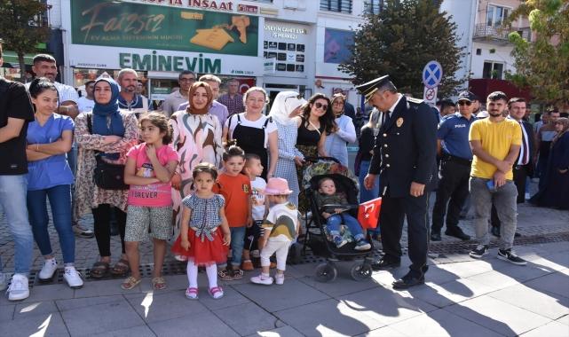 Ferit Paşa Caddesi'nde devam eden törende, Vali Vahdettin Özkan, araçla halkı selamladı.