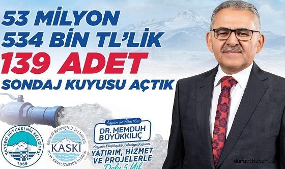 Yeni projelerle vatandaşların yaşam kalitelerini iyileştirmeye devam edeceklerini aktaran Başkan Büyükkılıç, şunları kaydetti:“Kentimizin tamamında vatandaşlarımıza uzun yıllar kesintisiz, kaliteli, standartlara uygun içme suyu temin etmek temel önceliğimizdir. Maalesef dünya genelinde küresel ısınma ve artan su tüketimi nedeniyle tatlı su kaynaklarında azalma yaşanmakta. Durum böyle olunca da su iletiminden ve yönetiminden sorumlu kuruluşumuz olan KASKİ’miz ile yeni su kaynaklarına yönelerek suyu verimli kullanmak, hemşehrilerimizin sağlıklı ve kesintisiz içme suyu ihtiyacını koruma altına almak amacıyla sondaj kuyuları açıyoruz. Bu kapsamda KASKİ’miz kent genelinde yeterli miktarda içme suyu iletimi için sürekli yeni kaynak arayışlarına yönelerek geride kalan 4,5 yılık süreçte merkez ve ilçelerde toplam maliyeti 53 milyon 534 bin TL olan 139 adet sondaj kuyusu açtı. Kayseri’mizin geleceğini birlikte inşa etmek adına yatırımlarımızı ve projelerimizi hayata geçirmeye devam edeceğiz.”