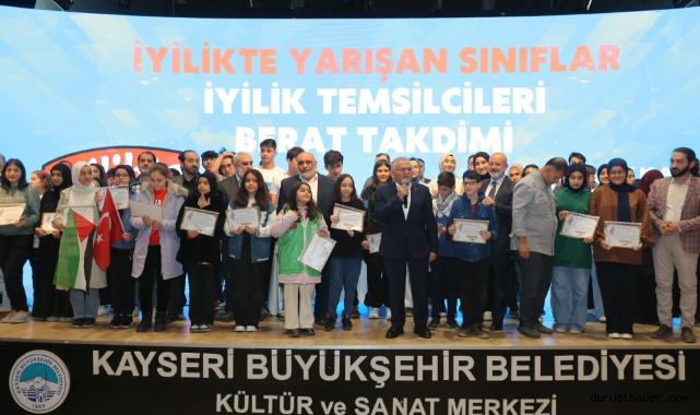 Kayseri İHH İnsani Yardım Derneği Özgür Filistin Yetim Dayanışma Gecesi Programı’nda İyilikte Yarışan Sınıflar İyilik Temsilcileri Berat Takdimi gerçekleştirildi.