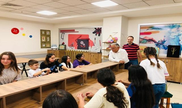 KAYMEK yaz kurslarında sınıfları gezerek, eğitim gören öğrencilerle sıcak ve samimi sohbetler gerçekleştiren Başkan Büyükkılıç, “Yaz dönemini daha verimli geçirmek için Büyükşehir Belediyemize bağlı tesislerimizdeki kurslarımıza ve atölyelerimize gelen yavrularımızla bir araya geldik” dedi.
