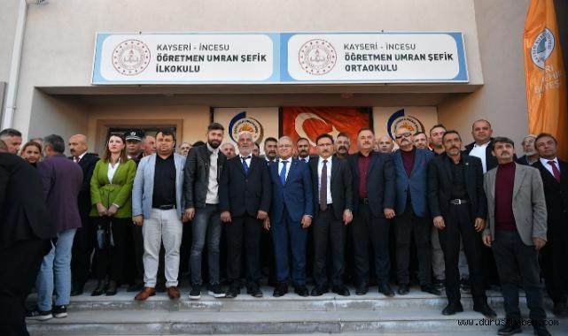 Başkan Dr. Memduh Büyükkılıç yönetimindeki Kayseri Büyükşehir Belediyesi, merkez ve 16 ilçeyi eğitim dâhil olmak üzere her alanda daha iyi noktalara taşımak amacıyla proje ve yatırımlarını hız kesmeden sürdürüyor.Bu kapsamda, Büyükşehir Belediyesi ve hayırsever Tülay Tekin ile İl Milli Eğitim Müdürlüğü iş birliğinde İncesu İlçesi, Saraycık Mahallesi’ne yeni bir okul kazandırıldı.Öğretmen Umran Şefik İlkokulu ve Ortaokulu’nun açılış töreni, 29 Ekim Cumhuriyet Bayramı’nın 101’inci Yıl Dönümü’nde gerçekleştirildi.Törene, Büyükşehir Belediye Başkanı Dr. Memduh Büyükkılıç ve Kayseri Valisi Gökmen Çiçek’in yanı sıra İncesu Kaymakamı Ömer Said Karakaş, İl Milli Eğitim Müdürü Coşkun Esen, İncesu Belediye Başkanı Mustafa İlmek, Büyükşehir Belediyesi Genel Sekreter Yardımcısı Ufuk Sekmen, hayırsever Tülay tekin ile öğrenciler, öğretmenler ve mahalle sakinleri katıldı.Öğretmen Umran Şefik İlkokulu ve Ortaokulu öğrencileri Büyükkılıç’ı okul girişinde ellerinde Türk bayrakları ve çiçeklerle karşılarken Başkan Büyükkılıç da öğrencilerle yakından ilgilendi.