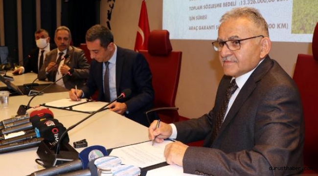 Büyükşehir Belediyesinde gerçekleştirilen imza törenine, Büyükşehir Belediye Başkanı Memduh Büyükkılıç, Talas Belediye Başkanı Mustafa Yalçın ve firma yetkilileri katıldı. Kayseri'de ulaşım konusunda ihtiyaç duyulan hizmeti yerine getirmenin mutluluğunu yaşadığını söyleyen Başkan Memduh Büyükkılıç, "Şehrimizle ilgili tüm yatırımları yapıyoruz. Bugünde ulaşımla ilgili önemli bir yatırıma imza atmak için buradayız. Ulaşımın önemli parçası olan tramvayla ilgili 6 elektrikli tramvayı daha bünyemize katacağız. Tramvaylarımız hem yerli hem de milli. Yaptığımız 13 milyon 326 bin Euro'luk 6 yeni tramvay şehrimize hayırlı oldu. 26 ay teslim süresi olan tramvaylarımız şehrimizde ulaşım konforunu yaşatmaya devam edecek. Bizler merkezde de ilçelerde de ayrım yapmadın 16 ilçeye bir bütün olarak hizmet ediyoruz" dedi.