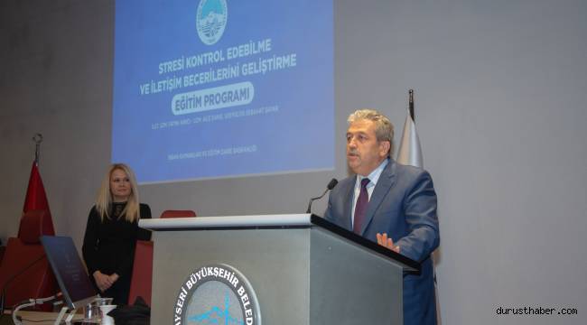 Büyükşehir Belediyesi İnsan Kaynakları ve Eğitim Daire Başkanlığı’nın düzenlediği eğitim seminerinde Huzur Çınarı Aile Danışmanlık ve Rehberlik Merkezi'nde görev yapan iletişim uzmanları ile sosyologlar eşliğinde personele Stresi Kontrol Edebilme ve İletişim Becerilerini Geliştirme eğitimi verildi.Büyükşehir Belediyesi Meclis Salonu’nda gerçekleşen eğitim seminerine Büyükşehir Belediyesi Genel Sekreter Yardımcıları Bayar Özsoy ve Serdar Öztürk, daire başkanları, itfaiye ve güvenlik ile Büyükşehir Belediyesi ve ilçe belediyeleri zabıta personeli katıldı.