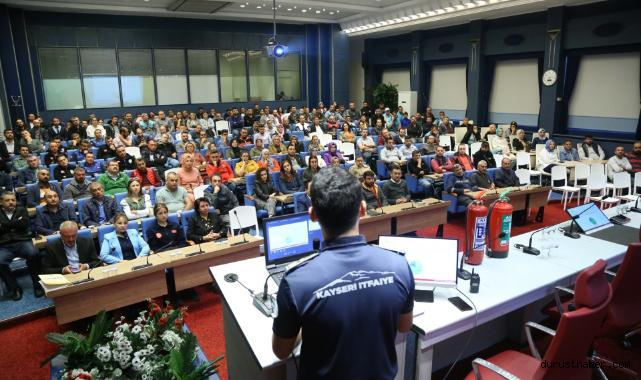 Kayseri Büyükşehir Belediyesi İtfaiye Daire Başkanlığı ve Sivil Savunma Uzmanlığı iş birliği ile belediye personeline "Yangın, Deprem ve Trafik Kazaları" eğitimi verildi.