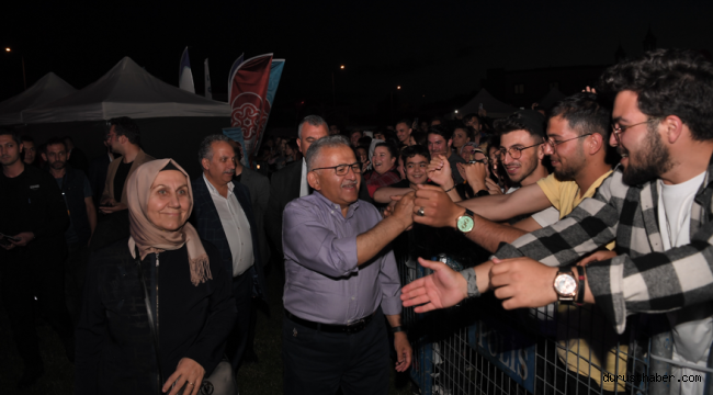 Sahneye Büyükşehir Belediye Başkanı Dr. Memduh Büyükkılıç ile Talas Belediye Başkanı Mustafa Yalçın davet edilirken, Başkan Büyükkılıç, sanatçı Kandemir’e çiçek takdim etti. Kayserililere seslenen Büyükkılıç, “Helal olsun size, her şeyin en iyisine layıksınız. Sizleri seviyoruz, sizlere hizmet etmek, sizlerin duygularına tercüman olmak bizim için mutluluk kaynağıdır. Sizlere iyi eğlenceler diliyoruz. Kayseri genç dostu, üniversite şehri olarak kendine yakışanı yapacaktır. Sağ olun, var olun Allah’a emanet olun” dedi.Üniversite sınavına girecek olan gençlere başarılar dileyen Büyükkılıç, “Haftaya üniversite sınavlarınız var, sizlere bu moral gecesi olsun. Başarılar diliyoruz, geleceğiniz aydınlık olsun, alnınızdan öpüyorum” ifadelerini kullandı.Başkan Yalçın ise Başkan Büyükkılıç’a Kayserililer adına teşekkür ederek, “Çok yoğun bir sezon geçirdiniz, öğrenciler, çalışanlar bunu çoktan hak ettiniz. Bu nedenle böyle hassasiyeti gösteren Büyükşehir Belediye Başkanımız Dr. Memduh Büyükkılıç’a sizin adınıza çok teşekkür ediyorum. Hem vizeleri olan, hem de finalleri olan öğrencilerimize başarılar dilerken, haftaya üniversite sınavında ter dökecek kardeşlerime de üstün başarılar diliyorum. Bizim gencimiz hem dersine çalışır, hem eğlenir, hem de devleti için elinden geleni yapar. Hepinizi gözünüzden, gönlünüzden öpüyorum” şeklinde konuştu.Büyükkılıç’ın takdim ettiği çiçeği Kayserililer adına aldığını söyleyen Sanatçı Kandemir de, “Başkanıma kocaman bir alkış alabilir miyiz? Bizleri sizlerle buluşturdu, çok teşekkür ediyoruz, çok sağ olsun. Çiçeği hepiniz adına alıyorum” dedi.MUHTEŞEM GÖRÜNTÜLERE SAHNE OLDU