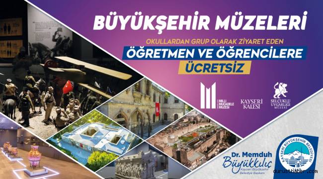 GRUP OLARAK ZİYARET EDEN ÖĞRETMEN VE ÖĞRENCİLERDEN ÜCRET ALINMAYACAKMüzeleri öğrencilerle dolduracak kararı değerlendiren Büyükşehir Belediye Başkanı Dr. Memduh Büyükkılıç, Kayseri’yi müzeler şehri yapma yönünde gayretlerini sürdürdüklerini kaydederek, “Kadim kentimizin tarihi ve kültürel mirasına Büyükşehir Belediyesi olarak sahip çıkarken önemli müze çalışmalarımızı da hummalı şekilde sürdürüyoruz. Hali hazırda hizmet veren müzelerimiz ile şehrimize yeni kazandıracağımız müzelerimizi okullardan grup olarak ziyaret edecek öğretmen ve öğrencilerimize ücretsiz olarak hizmet vereceğiz. Tabi ki meclisimizde aldığımız bu karar sonrası öğretmen ve öğrencilerimizi Büyükşehir müzelerimize davet ediyoruz” diye konuştu.Büyükşehir Meclisi üyeleri Nisan ayı Meclis Toplantısı’nda öğrencileri sevindirecek gündem maddesini görüşerek, Kent Tarihi ve Tanıtımı Daire Başkanlığı bünyesinde hizmet veren müzeleri okullardan grup olarak ziyaret eden öğretmen ve öğrencilerden ücret alınmaması talebi karara bağladı.Meclis üyelerince oybirliği ile kabul edilen gündem maddesine göre Büyükşehir Belediyesi’ne bağlı müzeleri grup şeklinde ziyaret eden öğretmen ve öğrenciler tamamen ücretsiz bir şekilde tarihe tanıklık edecek.