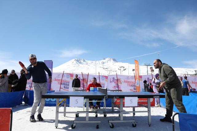 19 mekanik tesisi, 41 pisti ve 112 kilometre uzunluğundaki pistleriyle yerli ve yabancı kayak severlerin akınına uğrayan Erciyes Kayak Merkezi, aynı zamanda çeşitli spor dallarındaki birçok müsabakada sporseverleri Erciyes’in zirvesinde bir araya getiriyor.Bu kapsamda, Kayseri Büyükşehir Belediyesi Spor A.Ş. tarafından Erciyes Kayak Merkezi’nde, 2200 Rakımda Erciyes Masa Tenisi Turnuvası düzenlendi.