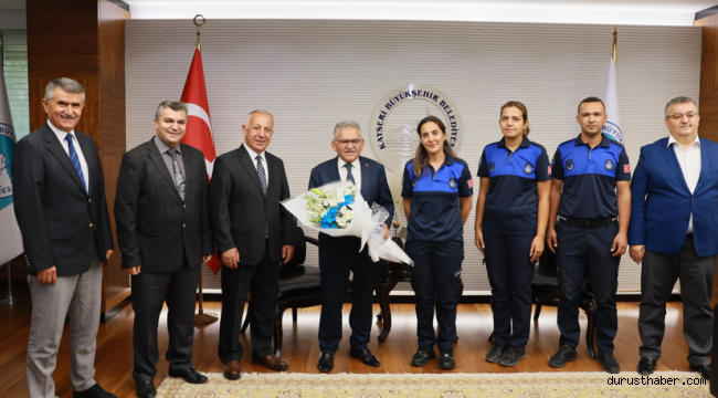 Kayseri Büyükşehir Belediye Başkanı Dr. Memduh Büyükkılıç, Büyükşehir Belediyesi Zabıta Daire Başkanı Mustafa Kayacık ve beraberindeki zabıta personelini makamında kabul etti. Zabıtalar, Başkan Büyükkılıç’a, zabıtaya vermiş olduğu değer ve katkılardan dolayı teşekkür ederek, Zabıta teşkilatının 196. Kuruluş Yıldönümü dolayısıyla çiçek takdim etti.
