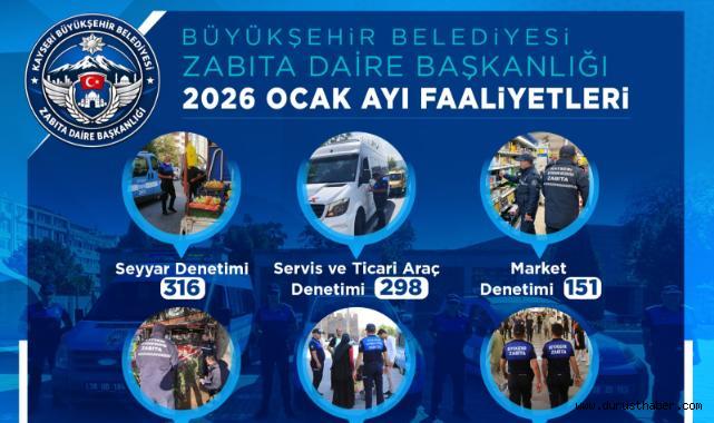 Kayseri’de huzur ve düzen için zabıta ekipleri 2026’nın ilk ayında yoğun denetim gerçekleştirdi.