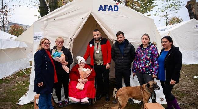 Çadırda kalan engelli depremzede "özel gün"de unutulmadı