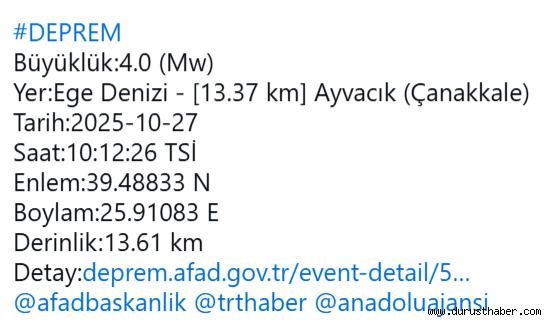 Çanakkale sabah saatlerinde meydana gelen depremle sarsıldı. AFAD verilerine göre merkez üssü Gökçeada açıkları olan deprem, çevre il ve ilçelerde de hissedildi. Kısa süreli panik yaşanırken, vatandaşlar ev ve iş yerlerinden dışarı çıktı.