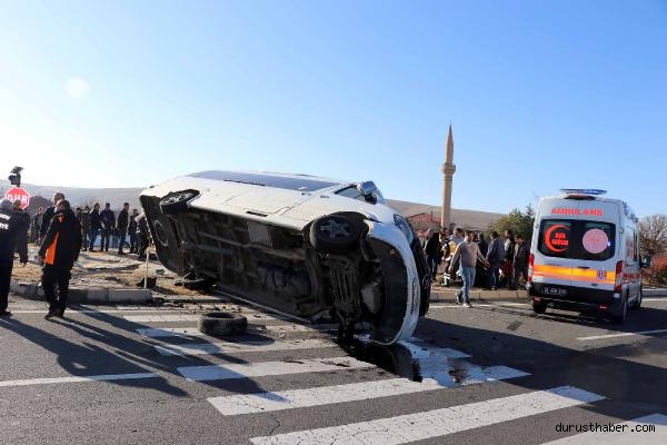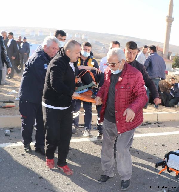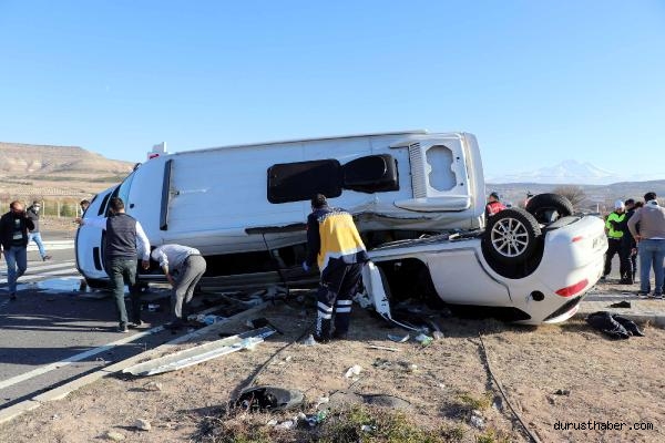 KAYSERİ-Ankara kara yolunda cenazeye gidenlerin otomobili ile nişandan dönenlerin minibüsünün çarpıştığı kazada 7 kişi yaralandı.
