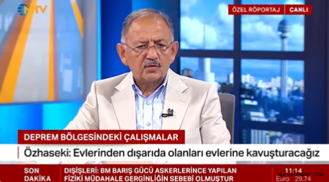 Özhaseki, NTV canlı yayınında gündeme ilişkin soruları yanıtladı.Deprem bölgesinde inşa edilen konutlara ilişkin soru üzerine Özhaseki, konut yapımının planlandığı gibi devam ettiğini söyledi.Özhaseki, yaklaşık 14 milyon insanın etkilendiği depremlerde 680 bin konutun, 170 iş yerinin yıkıldığını, evlerinden uzakta yaşayan 1 milyon 900 bin kişi olduğunu aktardı.Çadırlarda yaşayan pek kimsenin kalmadığını bildiren Özhaseki, "500 binden fazla insan konteyner kentlerde kalıyor. Çok az kişi yurtlarda, sosyal tesislerde kalıyor. 1 milyon 300 bin insana ki 325 bin aileye tekabül ediyor, kira yardımında bulunuyoruz. Dışarıda olan insanları bir an önce güvenli konutlara almak gibi birinci derecede önemli bir vazifemiz var." diye konuştu.Deprem bölgesinde konutları yaparak bir an önce hak sahiplerine teslim etmenin birinci vazifeleri olduğunu vurgulayan Özhaseki, "O bölgelerde şu ana kadar 180 binde fazla ihale aldık. Konutların büyük bir kısmını ekim, kasım ve aralık gibi zaten teslim edeceğiz. Bunları hak sahiplerine dağıtacağız. Bu arada 300 binden fazla konutun da rezerv alanlarında yapılması için çalışmalarımız hızlı bir şekilde devam ediyor." bilgisini verdi.Özhaseki, deprem bölgesinde rezerv alanları bulmanın zorluğuna dikkati çekerek, "Bir taraftan hazine arazisi arıyoruz, şehirden çok uzakta olmasın istiyoruz. Bir tarafta da zemin güvenilir olsun istiyoruz." dedi.Deprem bölgesinin inşa edilme sürecinde mühendislik anlamında "sıfır tolerans" ilkesiyle çalıştıklarının altını çizen Özhaseki, dere yataklarının olduğu ve fay hatlarının geçtiği yerlerde yapılaşmaya izin vermediklerini açıkladı.- "Ruhsat aşamasından yapının son aşamasına denetim yapacağız"Bakan Özhaseki, Yerinden Dönüşüm Projesi'ne ilişkin de şu bilgileri verdi:"Vatandaşa siz evinizi dönüştürmek isterseniz size kredi veririz, dönüştürün. Müteahhitlerle anlaşacaksanız eğer size bu aşamada tip sözleşmeler de verebiliriz, yapı denetim firmalarının masraflarından da kurtulun, yeter ki siz merkezdeki evinizi dönüştürün, biz sizi destekleyelim diye prensip kararı aldık. Ruhsat aşamasından yapının son aşamasına denetim yapacağız. Bir de her bir aşamaya kadar kendilerine para vermeye devam edeceğiz, yani 1 milyon 300 bin liraya kadar konutlar için, 750 bin liraya kadar da işyerleri için destekte bulunuyoruz."Yaklaşık 186 bin vatandaşın projeye başvurduğunu bildiren Özhaseki, projeyle insanların evlerine dönüşlerinin hızlanacağını ifade etti.Orta hasarlı binaları da depremler nedeniyle yıprandıkları için ağır kategorisine dahil ettiklerini ve yeniden inşa etmeyi öngördüklerini belirten Özhaseki, bakanlık olarak şehir merkezlerini inşa etmek istediklerini açıkladı.Özhaseki, İstanbul'daki kentsel dönüşüme ilişkin soru üzerine, olası bir depremin kendilerini korkuttuğunu dile getirerek, "İstanbul'daki deprem meselesi gerçekten bir beka, bir milli güvenlik meselesidir. Şöyle bir rakam var elimizde 6 milyon civarında konut var. Bunun 600 bini çok riskli, ilk etapta yıkılacak gibi gözüküyor. Durduğu yerde yıkılan binalar var zaten. Böyle bir ortamda bizim uykumuzu yitirip çok hızlı şekilde vaziyet almamız icap ediyor." açıklamasını yaptı.- "İstanbul'da 1 milyona yakın bağımsız birimi yeniledik"İstanbul için büyük bir çaba gösterdiklerini vurgulayan Özhaseki, "İstanbul'da yıllardır süren bir kentsel dönüşüm mücadelesi var. 2012'de yasa çıkmış. 11 yıl içerisinde Kentsel Dönüşüm Yasası'nın getirdiği avantajları kullanarak İstanbul'da 800 bin kadar bağımsız birim yenilendi. Şu anda da 180 bin civarında konut ve işyeri yenilenmek üzere. Yani neredeyse 11 yılda çıkardığımız yasayla 1 milyona yakın bağımsız birimi yeniledik." ifadelerini kullandı.Özhaseki, İstanbul'un Anadolu ve Avrupa yakalarında 350 bin konutluk rezerv alan belirlediklerini, buralarda bir an önce konut inşasına başlayacaklarını belirtti.İstanbul'da deprem hazırlıklarıyla ilgili yasal düzenleme ihtiyacına ilişkin soruyu yanıtlayan Özhaseki, Altyapı ve Kentsel Dönüşüm Birimi'ni başkanlığa dönüştürerek, buna bağlı bir birimi sadece İstanbul için görevlendirmek istediklerini bildirdi.Özhaseki, İstanbul'un kentsel dönüşümü için Meclis'in toplanmasına dair taleplerinin sorulması üzerine, "İstanbul'un kentsel dönüşümü, depreme hazırlığı için Meclis toplanır. Bunun için de Meclis çağrılır. Bu hazırlığı bizim yapmamız lazım, son haline getirebilirsem davet edeceğim arkadaşlarımızı." dedi.