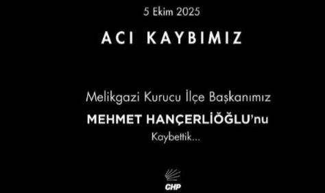 CHP Kayseri melikgazi Kurucu İlçe Başkanı Mehmet Hançerlioğlu, Vefat etti.