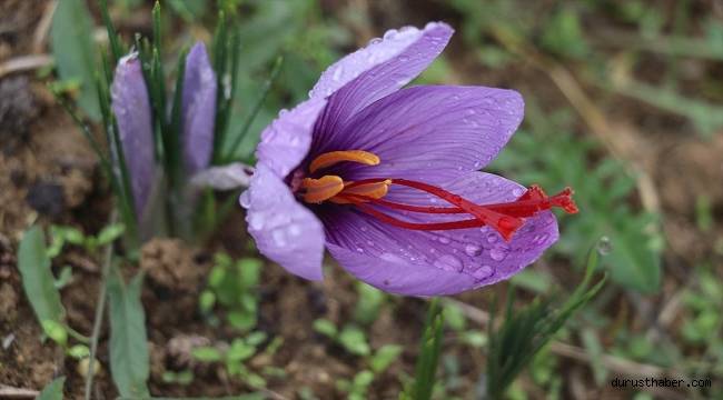 Her yıl ağustosta ekimine başlanan, ekim-kasımda mor renkli ve hoş kokulu çiçekler açan 15-30 santimetre uzunluğundaki safran, ilçede yaklaşık 30 çiftçi tarafından 79 dekar alanda üretiliyor.