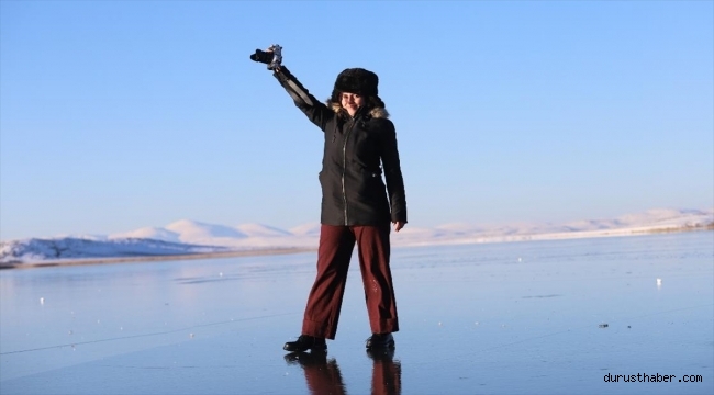 Hava sıcaklığının gece sıfırın altında 10 dereceye kadar düştüğü Kars'ın Arpaçay ilçesi Taşbaşı köyü sınırlarındaki gölün yüzeyi buzla kaplandı.