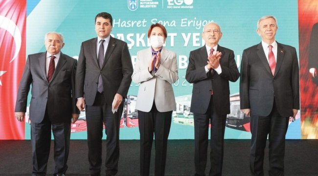 çalışan alçak gönüllü insanlara ihtiyacımız var. Sayın Başkan (Mansur Yavaş) siz Ankara için harcadığınız her kuruşun hesabını millete verdiniz. İhaleleri açık yaptınız, onların alışkın olmadığı bir yönetim tarzı. Onlar ihaleyi kapalı yaparlar. Halka hesap vermezler, halkı küçük görürler.”‘BELEDİYELER ALINSIN DİYE ÇIRPINDIM’Millet İttifakı’nın adayının 13. Cumhurbaşkanı olacağına dair inancın sebebinin bu ittifaktan seçilen büyükşehir belediye başkanlarının somut çalışmaları olduğuna dikkat çeken İYİ Parti Genel Başkanı Meral Akşener ise özetle şunları kaydetti:“20 yıldır aynı zihniyetin benzer isimlerin yönettiği bir Türkiye’deyiz. O gün doğmuş çocuklar bugün oy kullanabilir haldeler. Niçin belediyeler önemli? Kılıçdaroğlu şahidimdir, Niçin ‘ben bu belediyeler alınabilsin’ diye çırpındım. İşte bugün bu hizmetle ne kadar önemli olduğunu biliyoruz. Millet İttifakı’nın adayının 13. Cumhurbaşkanı olacağına dair inancın sebebi büyükşehir belediye başkanlarımızın somut çalışmalarıdır.ADAYIMIZ 13. CUMHURBAŞKANIFitneyi engellemek amaçlı şunu söylemek istiyorum; bugün Ankara’mızın yanında hem yolsuzlukların önüne geçildiği hem Ankaralıların yanında olunduğu hem de sosyal belediyecilik anlayışını somut bir şekilde hayata geçiren, çoluğunun çocuğunun zenginleştiğine dair bir kelimenin çıkmadığı Sayın Mansur Yavaş’ın şahsında bugün bu yolculuğun yani bu zihniyetin bu ülkeden tekrar söylüyorum demokrasi ile gönderilme yolculuğunun somut göstergesi sizlersiniz. Onun için ‘bunlar gelirse fakire fukaraya yapılan yardımların duracağı’ iftirası, bunları sözle anlatmak mümkün değil. Umarım ki saraylarda yaşayanlar sizin ayağınıza çelme takmak yerine bu çalışmaları sizi örnek alırlar bu acımasızlığın önüne geçerler.”