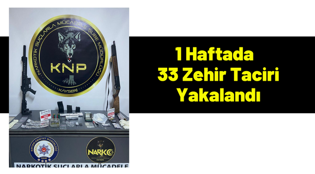 Kayseri’de polis ekiplerince yapılan operasyonlarda bir haftada ‘uyuşturucu ticareti yaptıkları’ iddiasıyla 33 şüpheli gözaltına alındı.