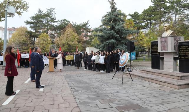 Atatürk Parkı'nda İlçe Milli Eğitim Müdürü Alican Kılıç, Atatürk Anıtı'na çelenk sunuldu.