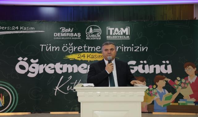 Ankara'nın Çubuk ilçesinde 24 Kasım Öğretmenler Günü dolayısıyla ilçeye yeni atanan ve meslekte en deneyimli öğretmenler bir araya geldi. Çubuk Belediye Başkanı Baki Demirbaş tarafından bir nikah salonunda düzenlenen programda öğretmenler onuruna yemek verildi.Programda konuşan Demirbaş, şehit olan öğretmenleri rahmet ve minnetle anarak öğretmenlerin hiçbir zaman haklarının ödenmeyeceğini söyledi.Öğretmenlerin 24 Kasım Öğretmenler Günü'nü kutlayan Demirbaş "Sağlıkla, sıhhatle bu mesleği uzun süre yapmayı Rabbim hepinize nasip etsin. Öğretmenlerimizin bir insanın yetişmesinde, gelişmesinde, hayatında, meslek edinmesinde kattığı değeri ölçmek mümkün değil. Geleceğimizin teminatı çocuklarımızın hayata hazırlanmasında ve ülkemizin kalkınmasında sizlerin çok büyük emekleri var, hepinizden Allah razı olsun." ifadelerini kullandı.Başkan Demirbaş, belediye olarak gençler ve eğitim için önemli hizmetler yürüttüklerini dile getirerek, "Gerek hükümetimiz kanalıyla, gerek belediyemizin öz kaynaklarıyla gençlere hizmet etmek için gece gündüz çalışıyoruz." dedi.İlçe Milli Eğitim Müdürü Alican Kılıç da Belediye Başkanı Demirbaş'a program için teşekkür etti.Konuşmaların ardından öğretmenlere çiçek takdim edildi.