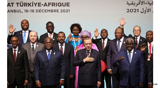 “15 MİLYON DOZ AŞIYI PAYLAŞMAYI PLANLIYORUZ"Cumhurbaşkanı Erdoğan, “Eski kolonyal alışkanlıkların yeni modellerle sürdürülmeye çalışıldığı günümüzde biz birlikte kazanmanın, birlikte kalkınmanın, birlikte gelişmenin, birlikte kol kola geleceğe yürümenin gayretindeyiz. Bu süreçte özellikle kadınlara, gençlere ve çocuklara ulaşmaya özel önem atfediyoruz. Türkiye burslarımızdan yararlanan Afrikalı öğrencilerin sayısı 14 bini aştı. Ziyaret ettiğimiz ülkelerde zaman zaman Türkiye mezunu bu kardeşlerimizle karşılaşıyor ve onların başarılarından gurur duyuyoruz. Bayrak taşıyıcımız Türk Hava Yolları, kıtayı dünyaya bağlayan uluslararası hava yolu şirketlerinden biri haline geldi. Koronavirüs salgınının yol açtığı sıkıntıların da aşılmasıyla birlikte inşallah önümüzdeki dönemde sefer sayısının artacağına. Somali'deki, Recep Tayyip Erdoğan Eğitim ve Araştırma Hastanesi, Sudan'daki Türkiye Eğitim ve Araştırma Hastanesi, Nijer'deki Nijer Türkiye Dostluk Hastanesi, Afrikalı kardeşlerimize şifa kapısı olmayı sürdürüyor. Şimdiye kadar dünya genelinde 5.5 milyona yakın insanın hayatına mal olan koronavirüs salgını döneminde de Afrikalı dostlarımızı yalnız bırakmadık. Gelişmiş ülkelerin tamamen içlerine kapandığı bu günlerde biz tıbbi yardımlarda dünyada ikinci sıraya yerleştik. Aralarında 44 Afrika ülkesinin de yer aldığı toplam 160 devlet ve 12 uluslararası kuruluşa katkıda bulunduk. Kovid-19 aşısına erişimde yaşanan küresel adaletsizliğin ve Afrika'nın mağduriyetinin farkındayız. Afrika nüfusunun yalnızca yüzde altısına kovid-19 aşısı tatbik edilebilmesi insanlık adına yüz kızartıcıdır. Bu sorunun çözümüne katkı sağlamak amacıyla imkanlarımız nispetinde önümüzdeki dönemde 15 milyon doz aşıyı paylaşmayı planlıyoruz. Yerli ve milli aşımız Türkovak için acil kullanım onayına kısa bir süre önce başvurduk. Süreç tamamlanınca aşımızı milletimiz ve Afrikalı kardeşlerimizle beraber tüm insanlığın hizmetine sunacağız" şeklinde konuştu.